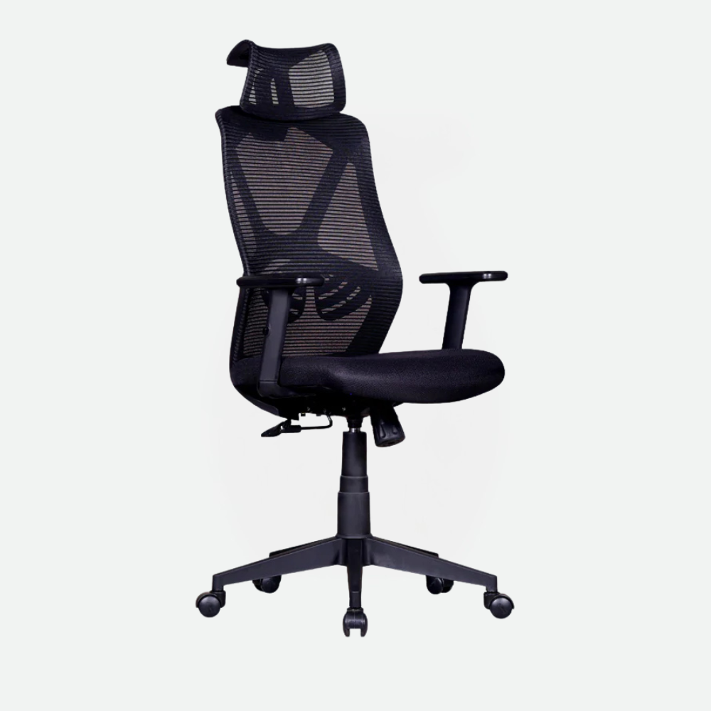 - High-rise mesh back with contoured headrest
